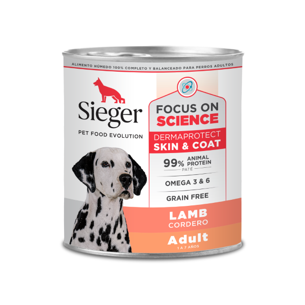 Sieger Adult Dermaprotect es un alimento balanceado completo húmedo indicado para perros adultos, mayores de 12 meses. Su fórmula está especialmente diseñada para perros con intolerancia alimentaria y sensibilidad cutánea.
