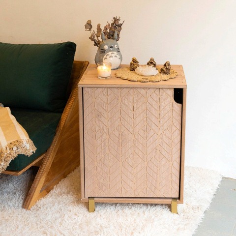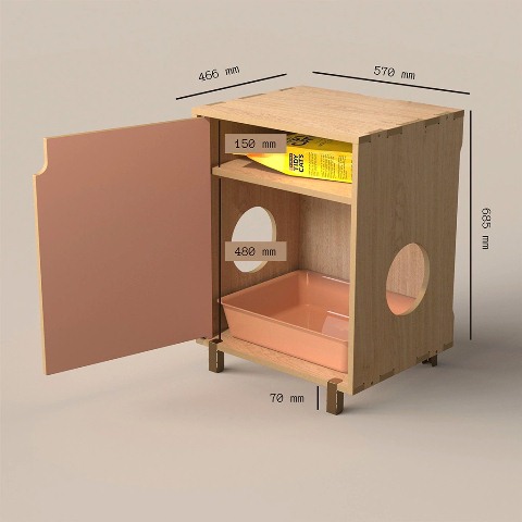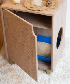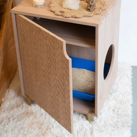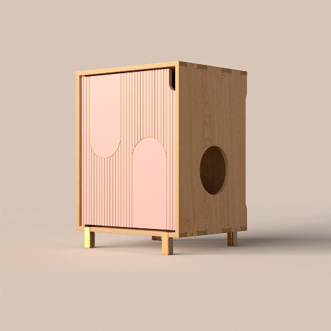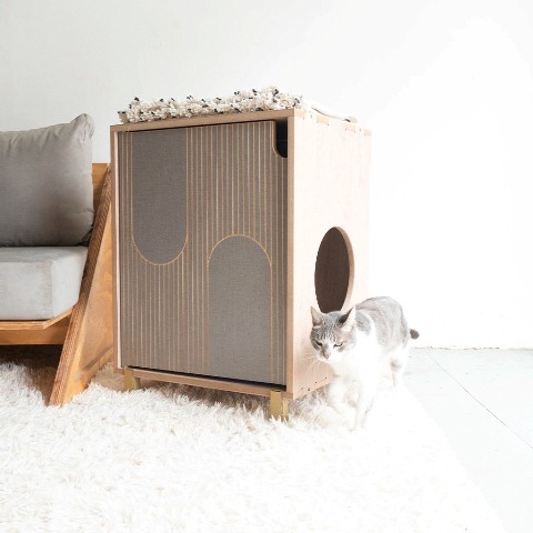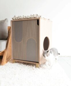 KHALA tiene una estética moderna y oculta la caja de arena de nuestros pequeños peludos. Dando como resultado un ambiente moderno e innovador en nuestros hogares.